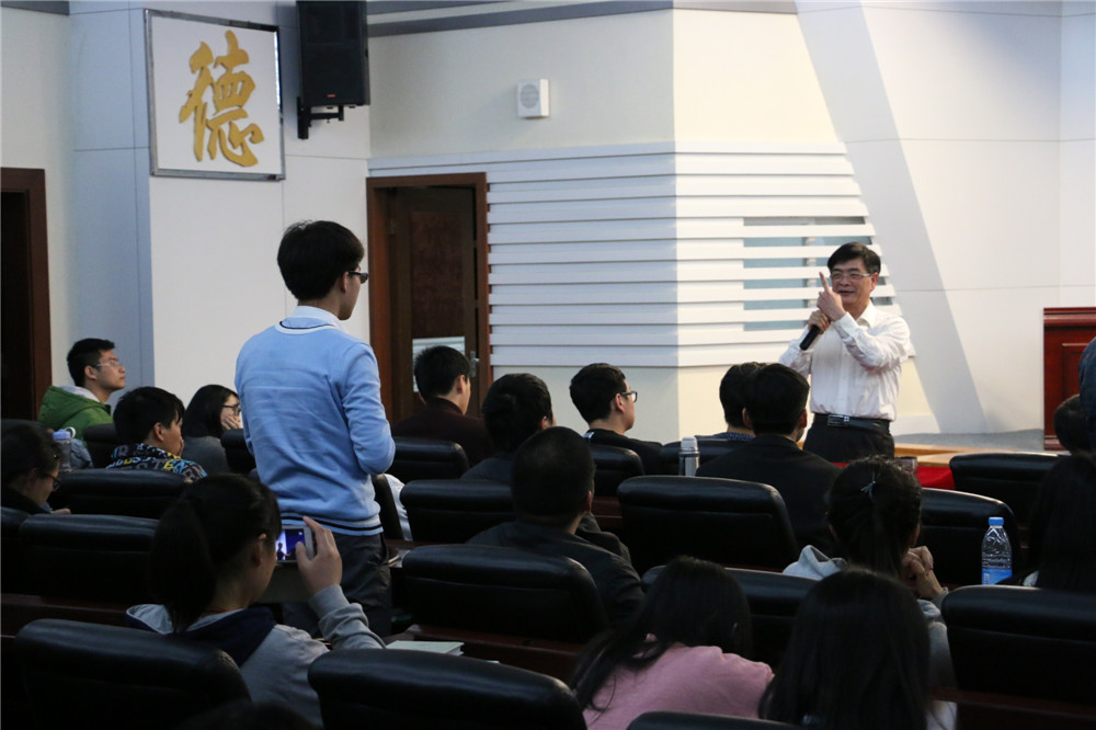 接下来的观众互动环节中,一位大三同学问道:要成为一名优秀的研究生,需要具备哪些优秀素养?老师深入浅出地给出答案:一是爱好,研究生的研究生涯是很艰苦的,爱好在其中才能全身心的投入研究;二是耐得住寂寞,拥有一定的定力,持之以恒定能苦尽甘来。再有同学因家庭原因对自己研究生理想表达了怯懦与畏惧,表达了自身的迷茫,不知是否要继续下去。江教授引用约翰·哈维的一句话来回复其问题:Dont think !Try!幽默而不失坚定的驱散同学的迷茫。同时,教授总结道:把所有迫不得已的事情,变作有趣的事儿,不管追求什么,有没有能力实现,先追起来看,年青不怕重来!
