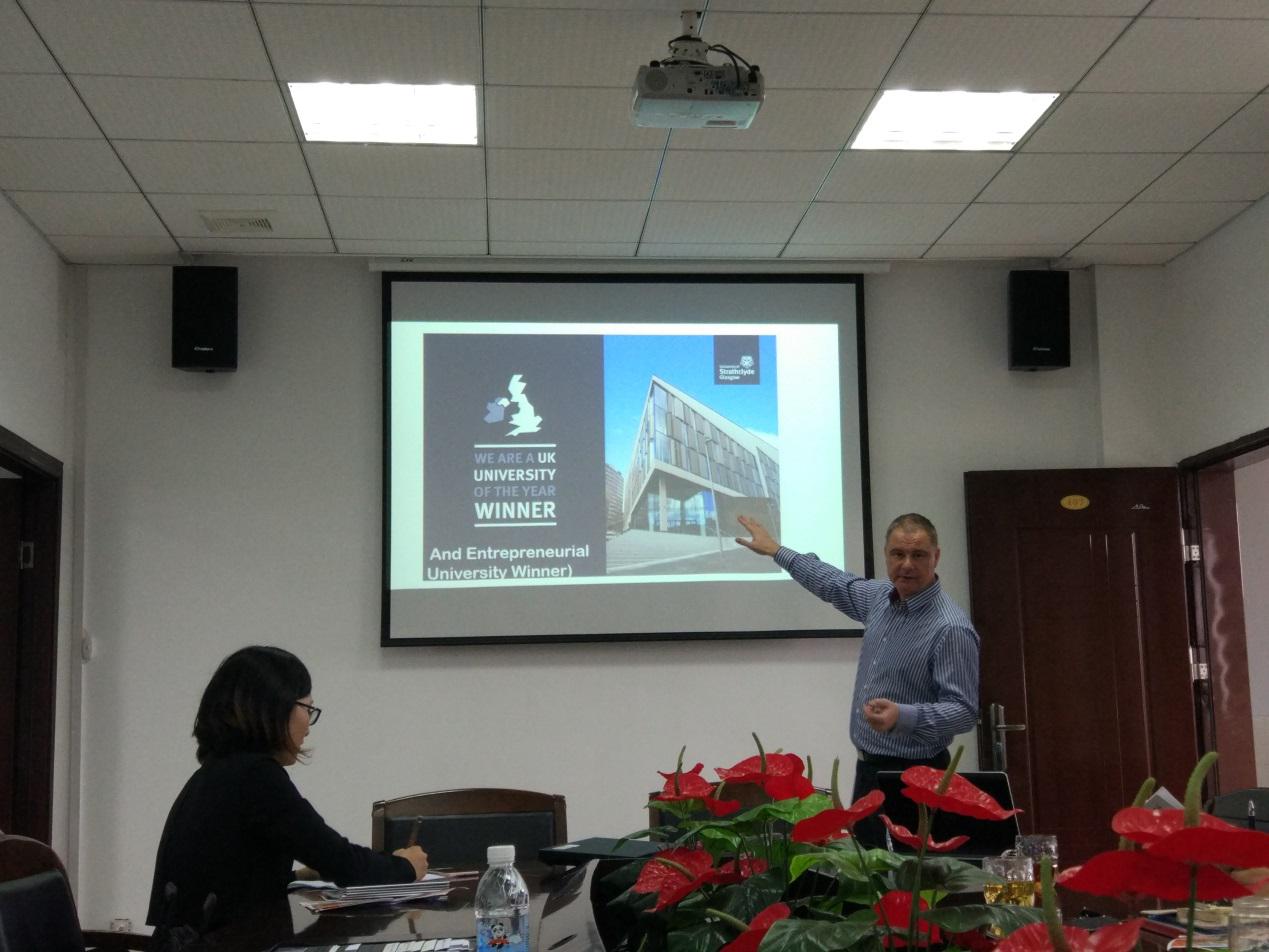 2017年11月08日上午,英国思克莱德大学本科心理学课程教学主任,博士生导师 Dr. Stephen Kelly 来公司访问交流。人文学院林贤浩经理、许晓清书记、谭卫华副经理陪同访问。Dr.Kelly首先参观了人文学院临床心理行为实验教学中心,对公司的教学与研究设施表示印象深刻。之后Dr.Kelly为学院领导及教师代表们详细介绍了思克莱德大学心理学专业本科及研究生的课程设置,人才培养方案,实验室设置,实习安排等相关内容。双方就未来的合作办学方向,短期交流生项目及联合培养研究生的可能性展开深入的交流和热烈的讨论。未来将以此次访问为契机,加强加深沟通,尽快开展合作。(应用心理系  郑秋悦)