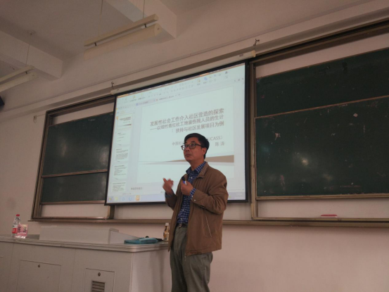4月1日,陈涛教授做了主题为“发展性社会工作与社区营造”的讲座。陈教授以《今日说法》“心的重生”视频为导入,向在座师生系统介绍了发展性社会工作如何介入社区营造。陈教授首先剖析了直接社会工作和间接社会工作的区别,与使用精密手段的直接工作手法不同,以发展性社会工作为代表的间接社会工作更强调通过培养服务对象自身的能力来达到“助人自助”的目的。紧接着陈教授以青红社工介入四川省绵竹市汉旺镇“512”地震的灾后重建项目为案例,具体讲述了社工使用发展性社会工作这一理念实施项目的整体流程:第一阶段,建立灾后治疗性小组,组员在小组中分享受灾经历、相互抚慰灾后创伤,增进组员的归属感与认同感,同时选拔小组领袖;第二阶段,在小组的基础上建立生产性合作社,引入“发展生计”的目标,组建管委会,培育小组领袖,使用增权赋能的方法促进个人成长和合作社的独立运作。在项目过程中,服务对象通过生产性的手段重建自我认知和生命的意义,完成从受助到自助乃至助人的转变。最后,陈教授从理论上对该模式进行了提炼,介绍了发展性社会工作的两个基本假设:服务对象被排斥参与在主流的经济活动之外;服务对象自身拥有能力,只是受到了环境的限制。社工要做的是改善环境,挖掘服务对象的潜力,扮演照顾者、陪伴者和同行者角色,帮助服务对象从受助、自助走向助人。