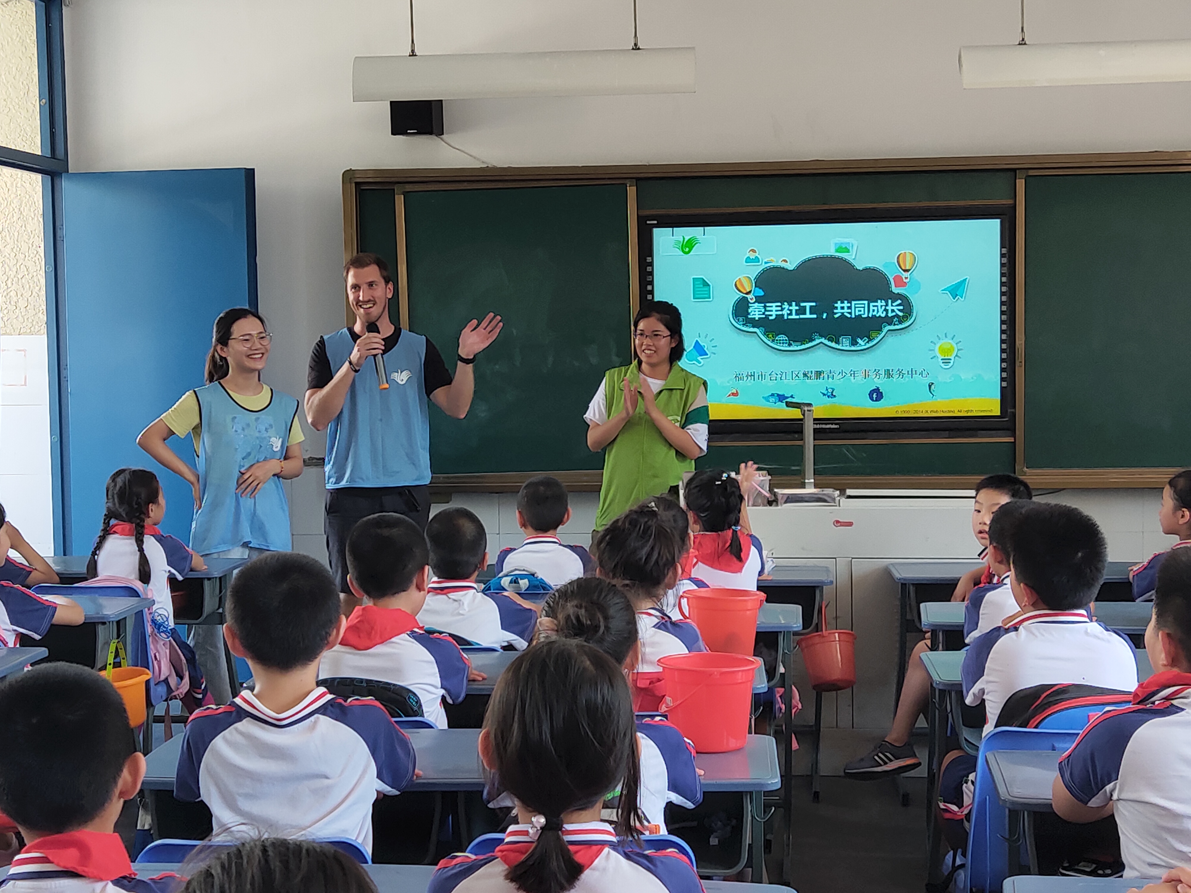 交换生Malin和Oskar与福州市台江区鲲鹏青少年事务服务中心的社工进行项目交流