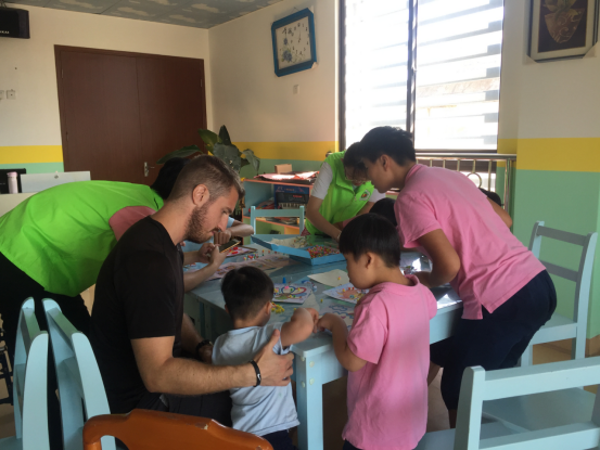交换生Oskar参与福州市儿童福利院的院童手工小组活动