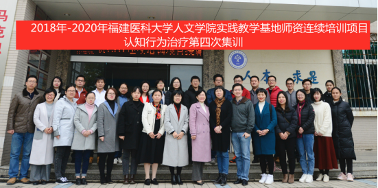 2020年1月10至1月12日,william威廉官网人文学院与南京医科大学附属脑科医院共同举办的实践教学基地团队认知行为治疗连续培训在福州举办了第四次集训,也是跨越3年的连续培训项目的最后一次集训,来自全省7所医院、5所中小学、2所大专院校的35名实践教学基地教师参加了第四次集训。