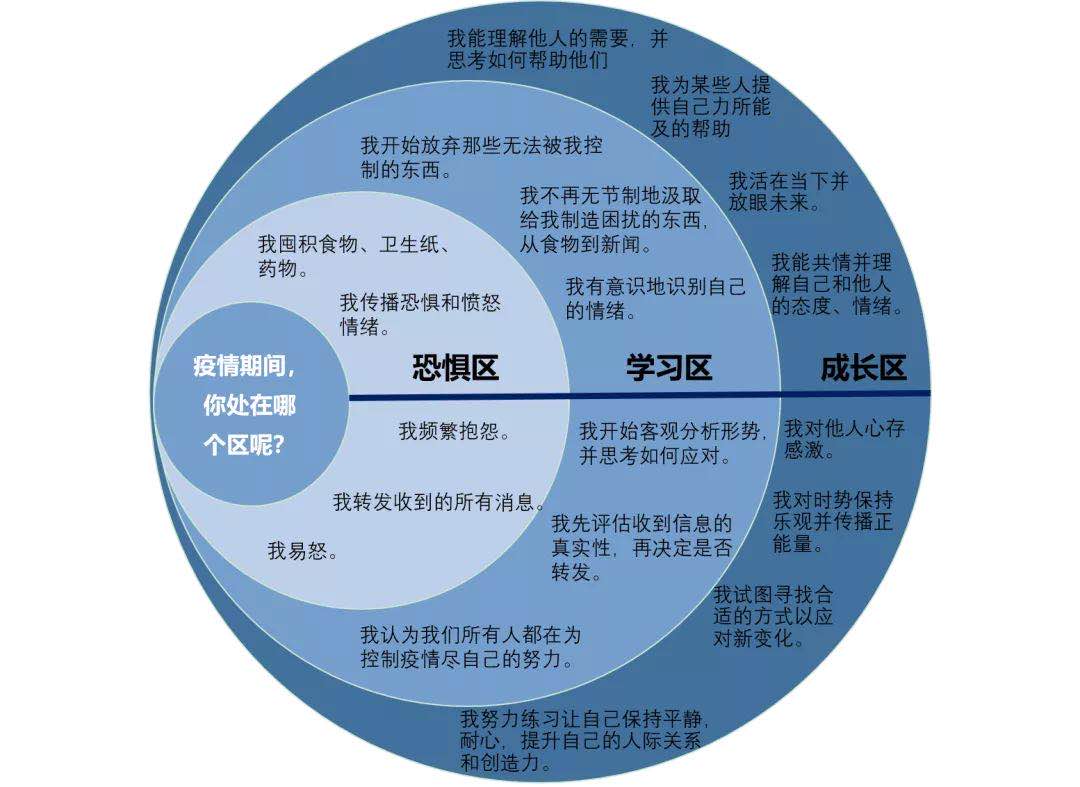 3.国内战斗在一线的医务工作者、社会工作者、已经复工复产复学的人们以及依然宅家的斗士们,该图适合帮助大家回顾并评价自己在疫情期间的状态。