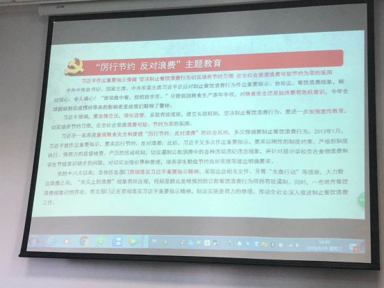 林贤浩书记带领全体教职员工集中学习了习近平总书记关于坚决制止餐饮浪费行为、切实培养节约习惯的重要指示精神,并观看了《1×1400000000》教育视频。他强调,一要认真学习习近平总书记重要指示内容。要自觉将勤俭节约、艰苦奋斗的理念内化于心、外化于行;二要严格落实厉行节俭措施。做到按需点餐,理性消费,让“舌尖”节俭成为“心间”美德;三要以身作则强化节约理念。积极宣传,以自身示范带动身边更多的人践行勤俭节约社会风尚。