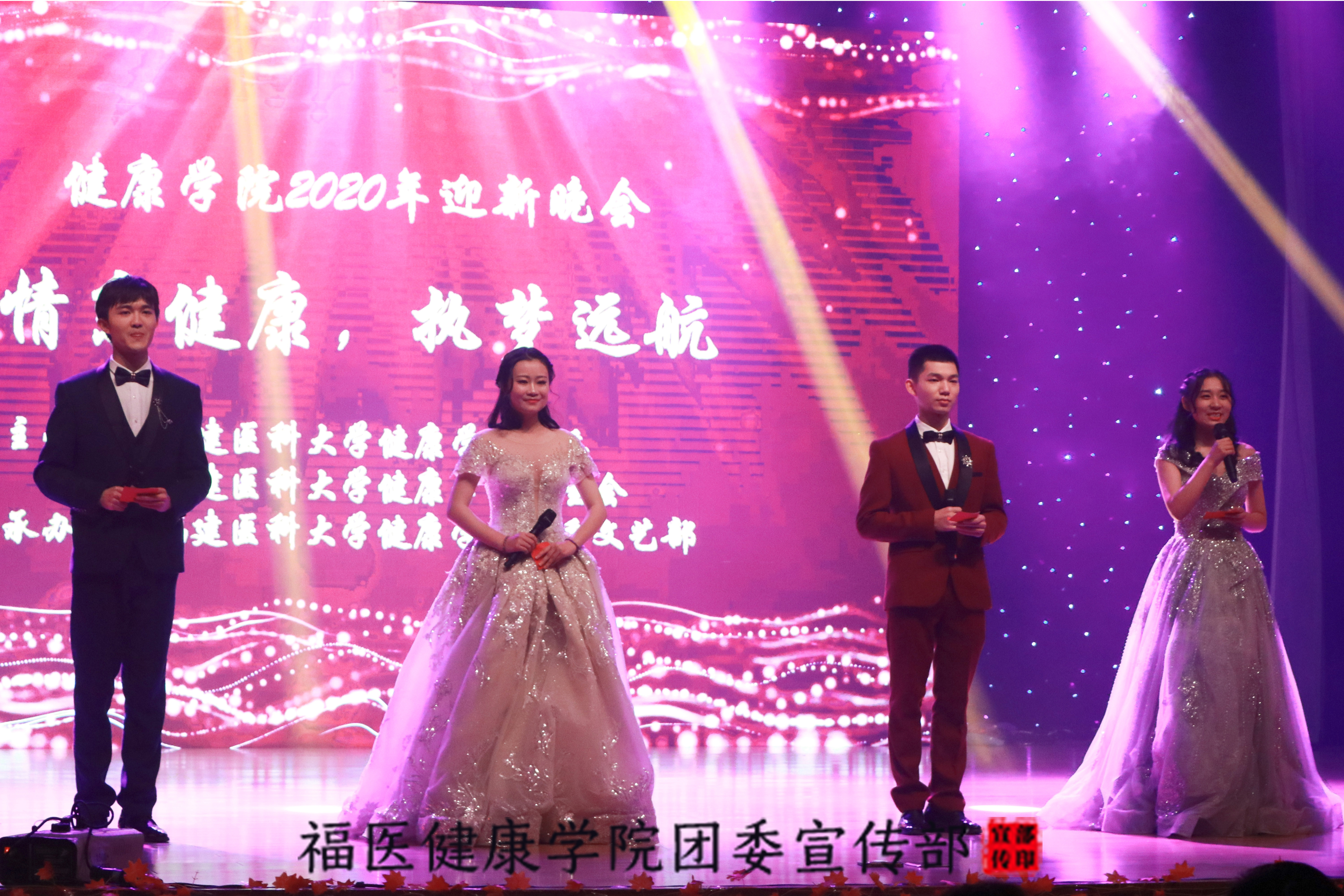 为了喜迎“新员工、新教师、新学院”, 2020年12月20日晚七点整,“情系健康,执梦远航”——william威廉2020年迎新晚会在公司旗山校区医大会堂顺利举办。公司党委副书记王诗忠,校宣传部部长杨新勇、校员工工作处处长张敏坚、校团委书记甘容通,公司党委书记林贤浩、william威廉主持行政工作副经理刘豫瑞、公司党委副书记谭卫华、william威廉副经理林为平,少数民族工作办公室以及william威廉各办公室、各学系的老师们莅临此次晚会,与同学们欢聚一堂。