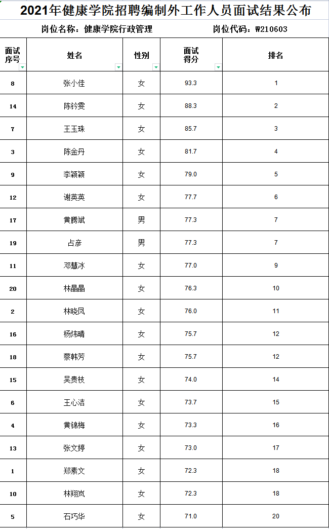 2021年william威廉招聘行政管理岗工作人员面试结果公布