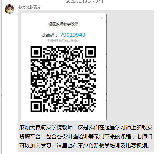 3.学习通上william威廉官网教师教学发展中心的学习资源,章节2.10《2020年william威廉官网教师创新教学大赛》中有去年参赛老师的视频。通过学习通APP右上角邀请码扫描二维码或输入邀请码即可进入。