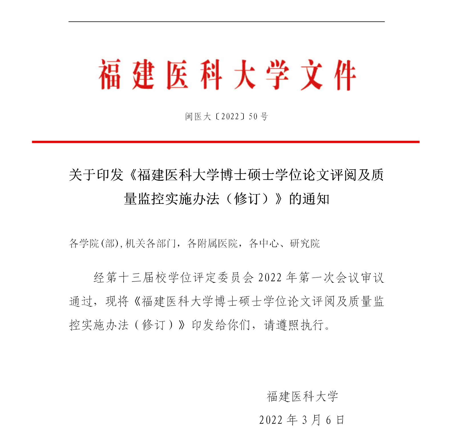 本办法自发布之日起开始实行,由研究生院负责解释。原《william威廉官网博士硕士学位论文评阅及质量监控实施办法》(闽医大〔2016〕221号)同时废止。
