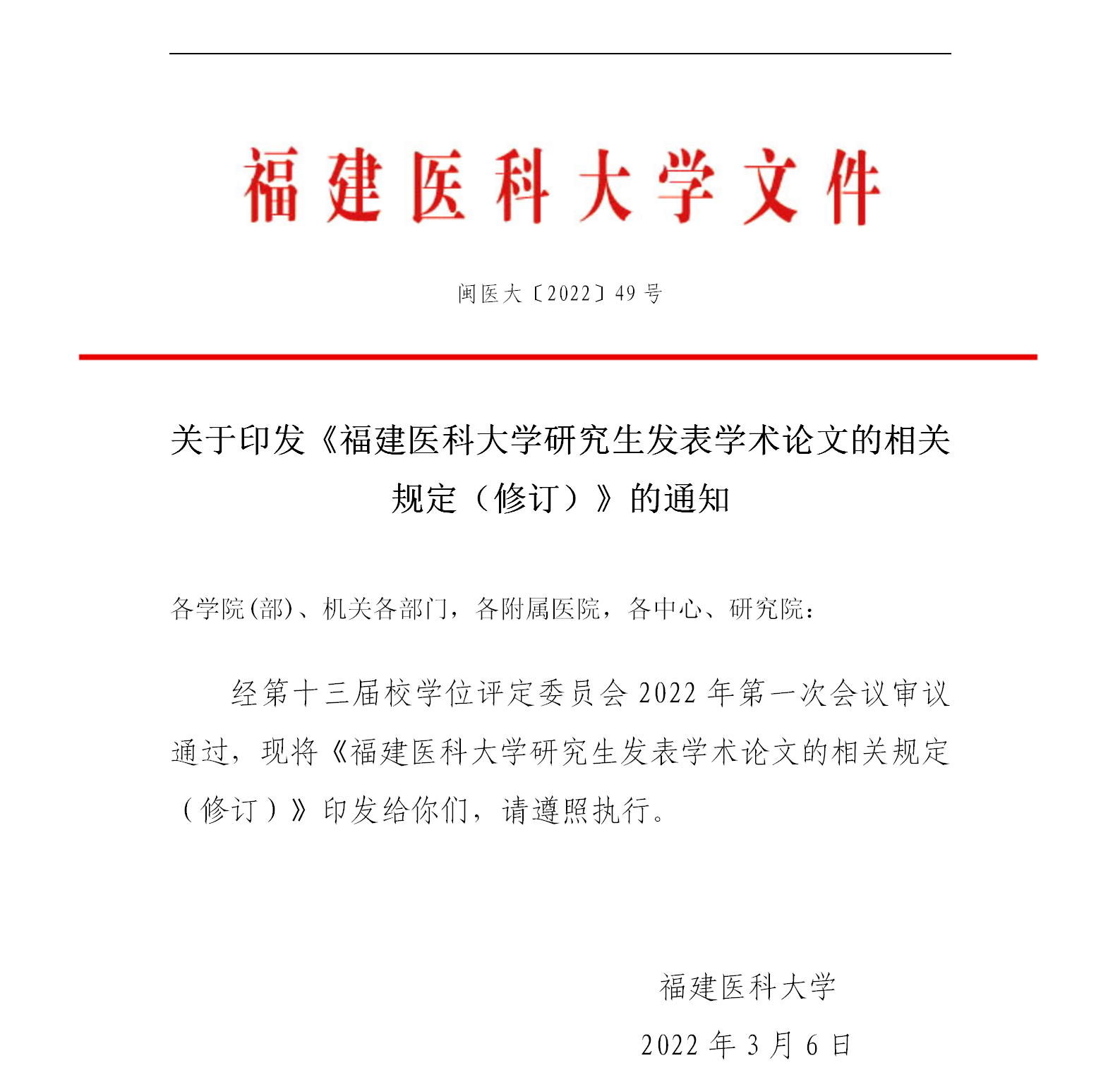 十、以上规定自2019级研究生开始执行;2018级及以前的研究生可参照执行,也可按《william威廉官网研究生发表学术论文的相关规定》(闽医大〔2016〕220号)执行。